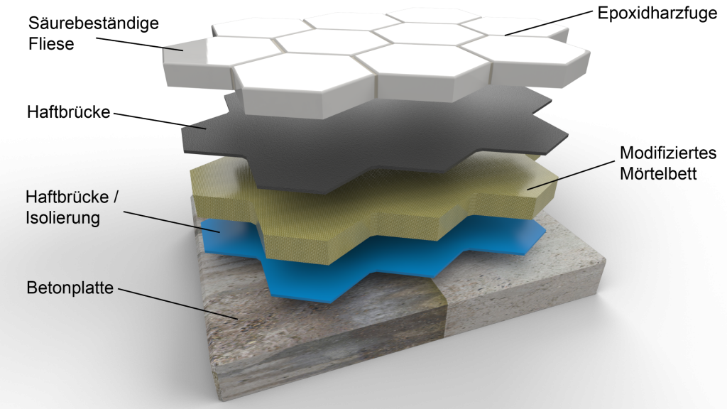 Das klassische Basic System ist das am häufigsten, in der hygienischen Lebensmittel produzierenden Industrie, eingesetzte keramische Bodensystem.